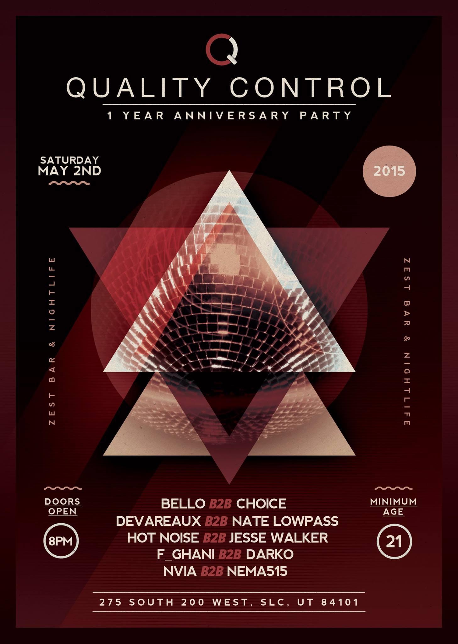 Quality Control would like to invite you to our 1 year anniversary party! What was once just an idea is now a movement! Join us on May 2nd as we celebrate a year of QUALITY featuring QC alumni playing special back to back sets!!