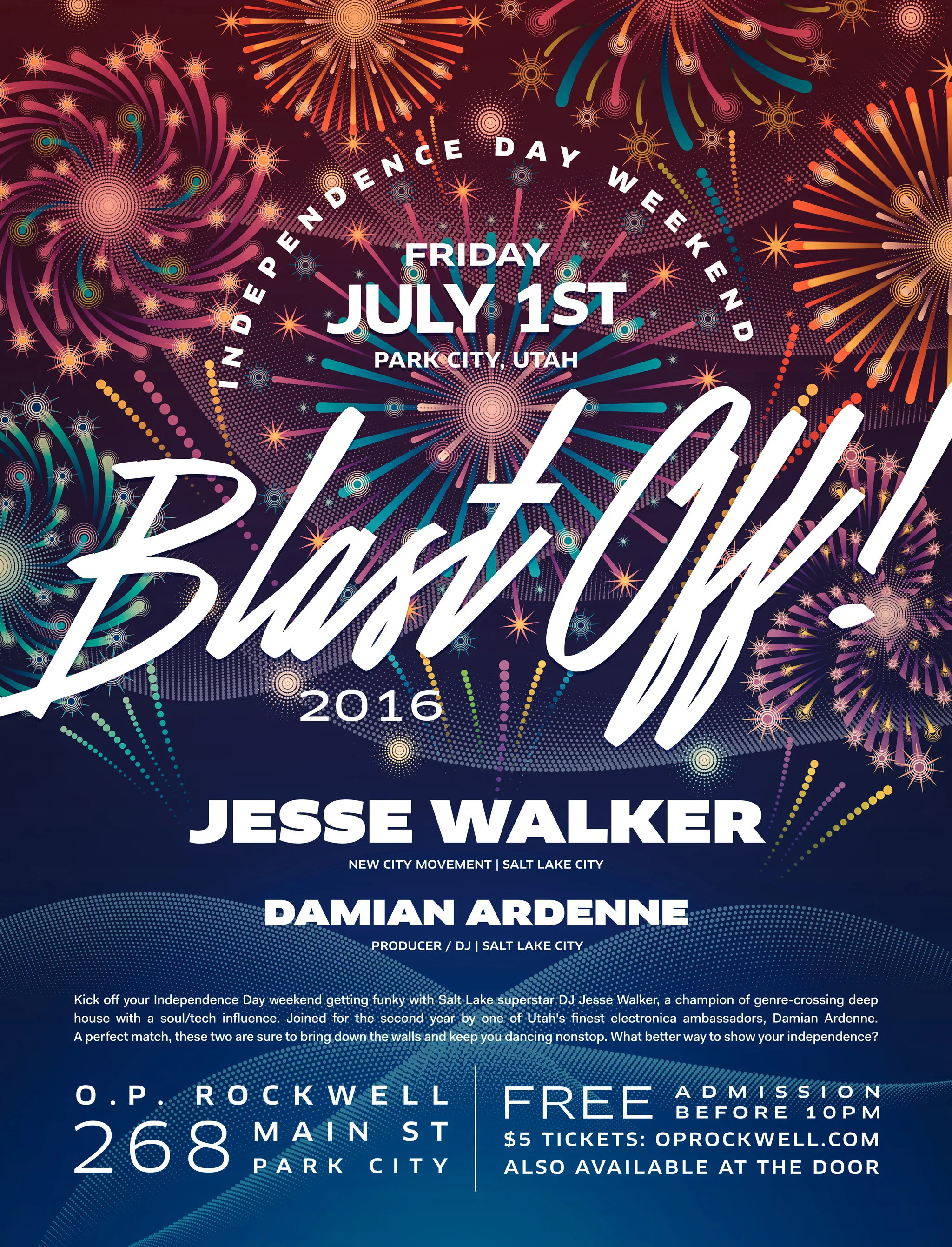 Blast off your Independence Day Weekend getting funky with Salt Lake superstar DJ Jesse Walker. A champion of genre-crossing deep house with a soul/tech influence, Walker is ready to rock the house at O.P. Rockwell on Friday, July 1st. Joining him is one of Utah's finest desert tech DJs, Damian Ardenne. A perfect match, these two are sure to bring down the walls and keep you dancing nonstop. What better way to beat the heat? Secure accommodations and enjoy all that Park City, Utah has to offer.