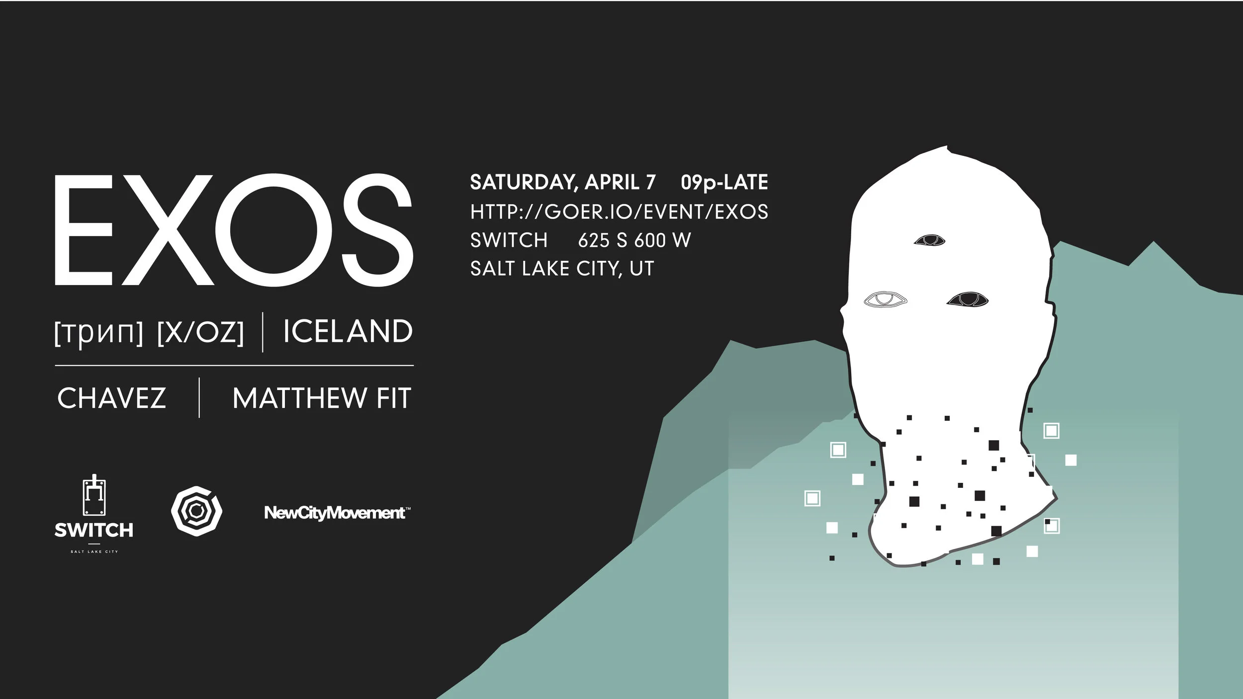 Switch SLC and New City Movement are proud to bring you Icelandic techno star EXOS for his Salt Lake debut on April 7, 2018. Join us for what is sure to be a memorable night of mind, body and spiritual exaltation. Support from Matthew Fit (SLC) b2b with Chavez (NYC).