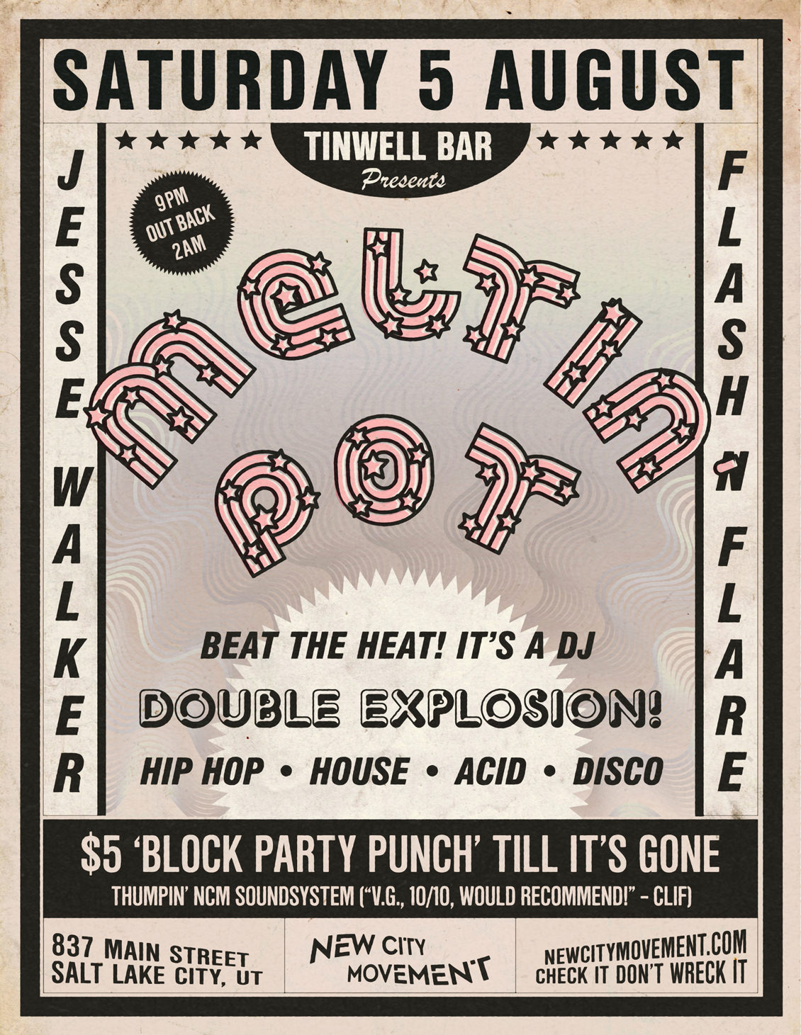 Venture deep into the concrete jungle this August 5th at Tinwell Bar with two of SLC's finest! $5 'Block Party Punch' to quench your thirst. (while supplies last). All LOVERS welcome.