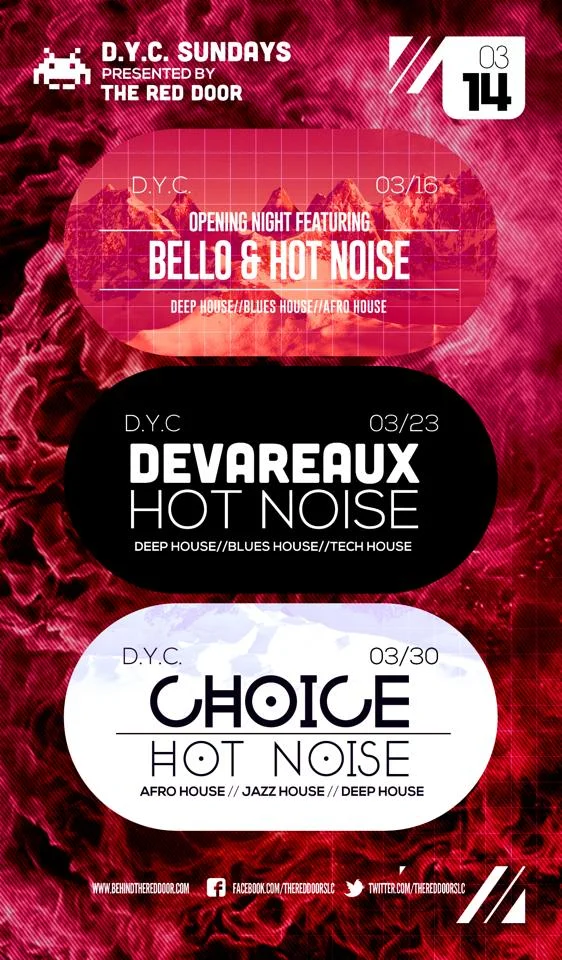Le Red Door has a new Sunday Night house party called "Dance Yourself Clean" that kicked off last night. If it weren't for my front-loaded weekend I could have been there to see some of my favorite new DJ's Bello and resident Hot Noise spinning deep house. This handbill has the info for upcoming shows in March. Yours truly is booked on April 10th.