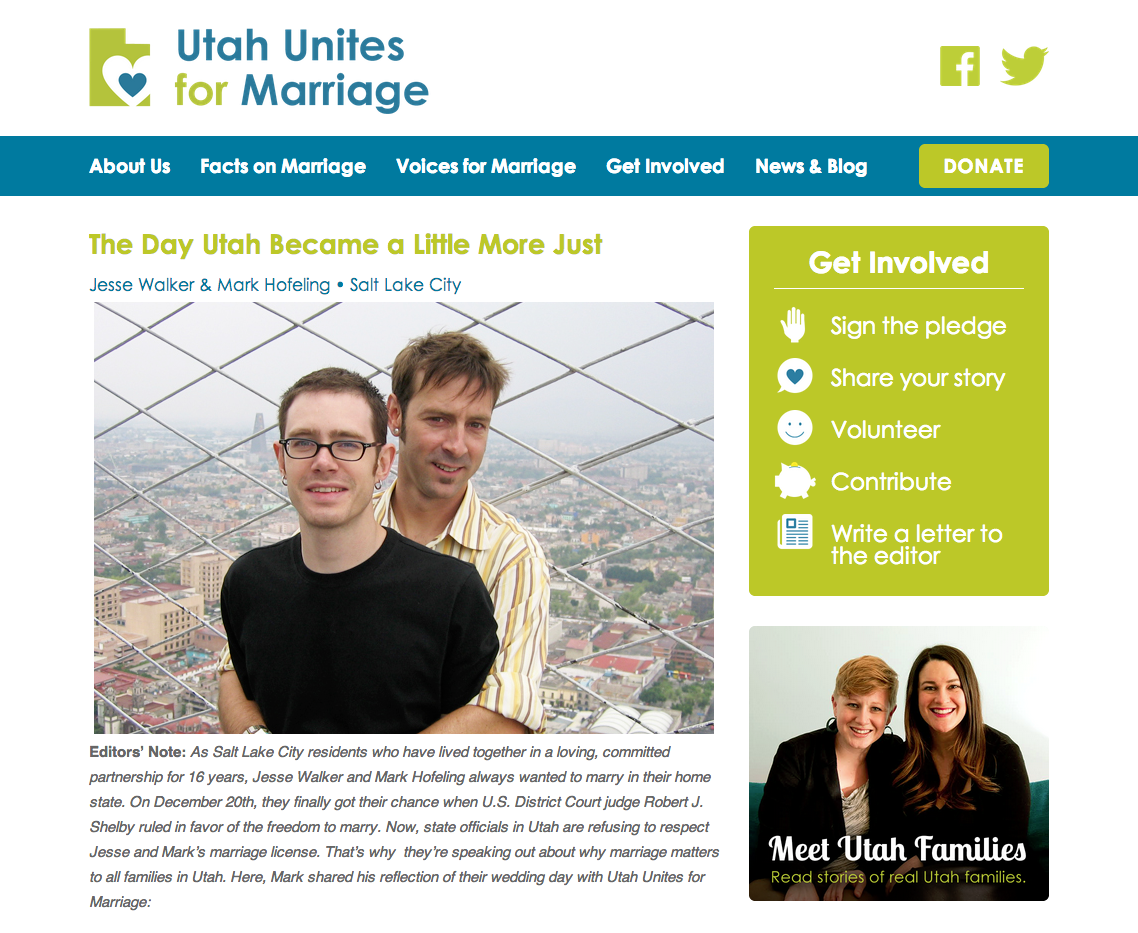 Utah Unites for Marriage featured my husband Mark's first person account of our wedding day on their website. You can read it and get involved here: http://www.utahunites.org/jesseandmark/