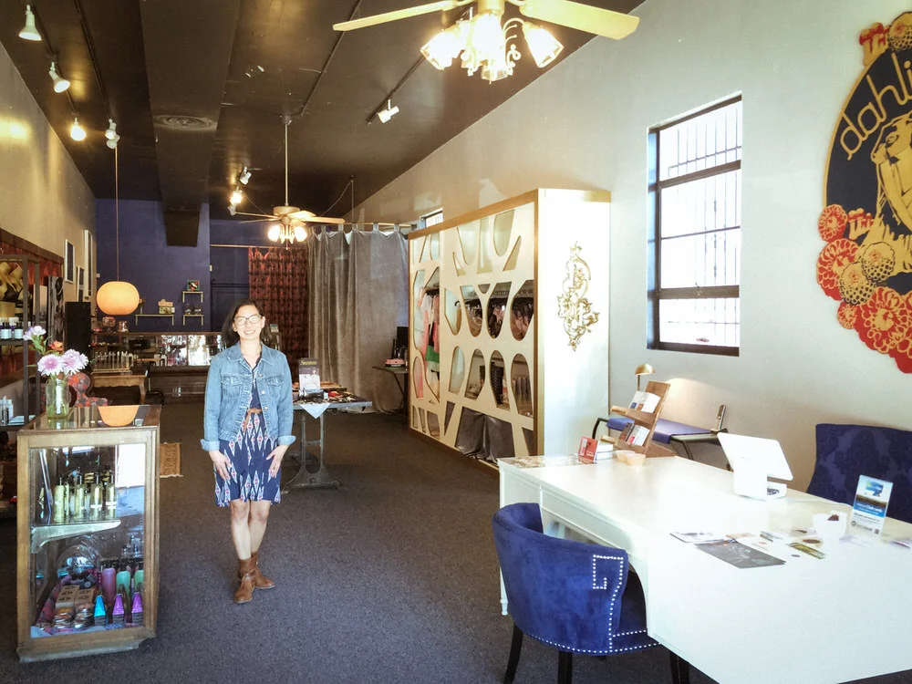 "I opened up The Dahlia Room when I saw that there was a need for a progressive sex shop that catered to adults. Navigating the extensive world of sex toys can be intimidating. I wanted to create a clean and non cluttered space offering a well curated selection of high quality items for people to enjoy. Our focus at The Dahlia Room is education and conversation about all kinds of sex. We know you can purchase most of these items online, so the advantage in shopping with us is the knowledge that we can provide to help you expand your sexual boundaries. From beginner to expert, we have something for everyone and want to make you feel comfortable shopping for your new toy."
