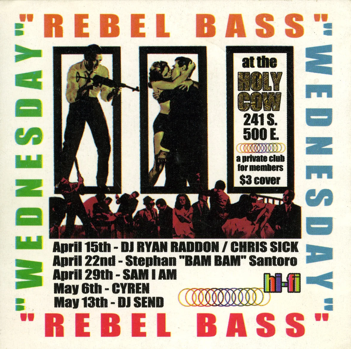 My recent gigs at Urban Lounge, the latest opening for the incredible Bonobo got me thinking about my first experiences playing at the venue going back to the late 90's. At the time it was called the HOLY COW and it was as it sounds... a awfully named shit hole of a college dive. Not that there isn't a time and a place for that but it was pretty lackluster to say the least. Two busted loudspeakers, a stage and the everlasting smell of PBR. But it was there and then I was graciously added to a monthly roster for 'REBEL BASS', a party thrown by my friend–and one of the cities truest, bluest nightlife denizens–Sir Jimmy McCagno with some of the best DJ's in the city. I used to go by the DJ name 'Send' and many of you know Ryan Raddon as the now mega EDM phenomenon 'Kaskade'.