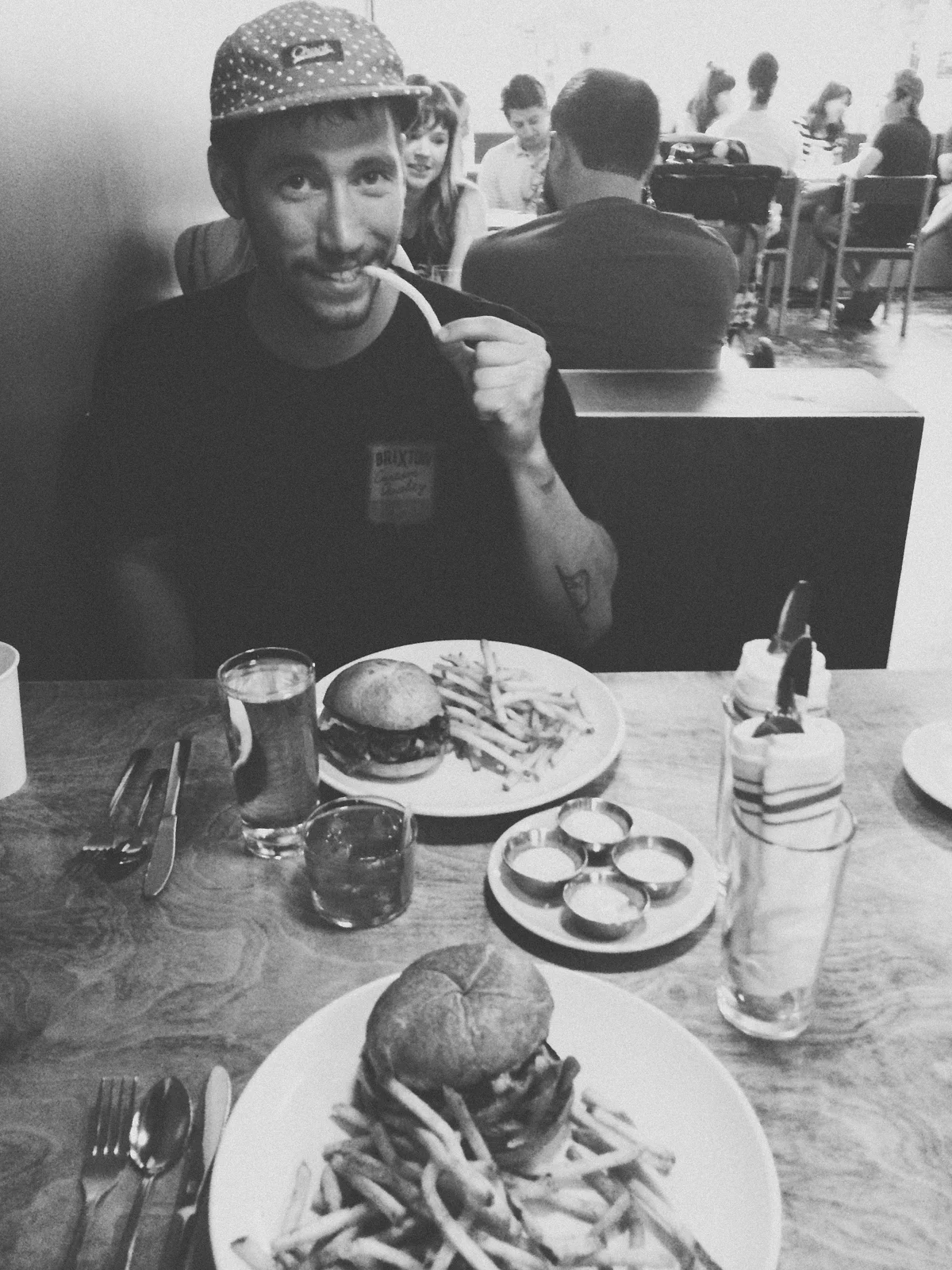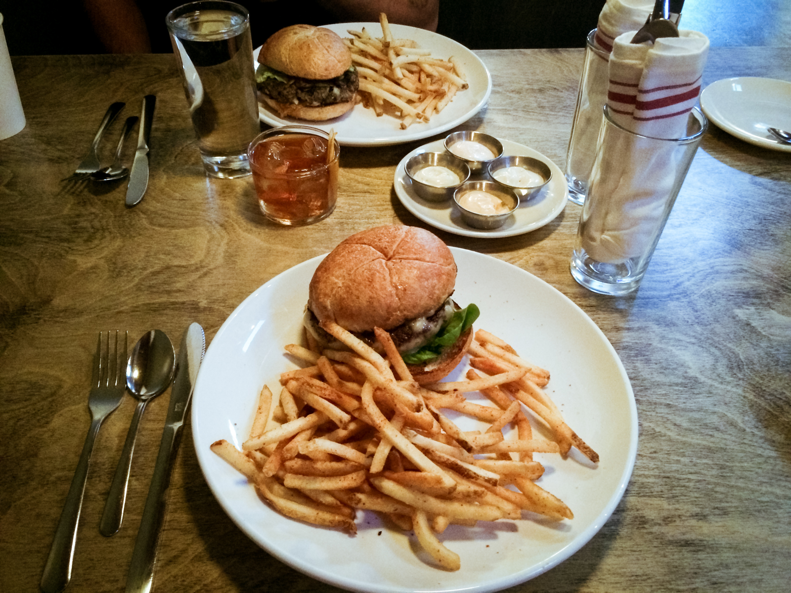 Black bean burger (top), 'Rye' burger (bottom), which was perfectly cooked and absolutely amazing. Spicy fries were great too, served with garlic and spicy aioli.