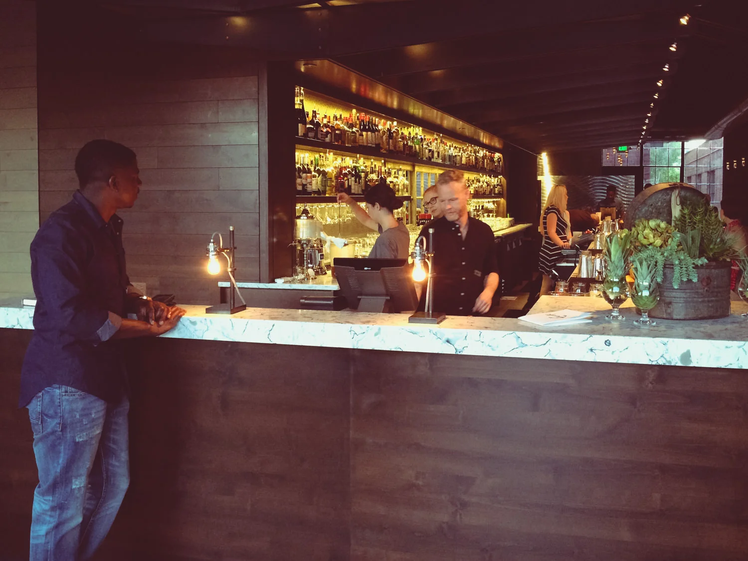 Under Current, the sibling bar attached to Current Restaurant has only been open for three weeks but both are proving to be an exquisite addition to downtown dining and drinking. Under Current bills itself as a friendly neighborhood cocktail bar with a focus on oysters, seafood, beer, wine, amari, aperitif, gin, absinthe. I stopped in early this Saturday, counting myself lucky to sip specialty cocktails from bar managers Amy Eldridge and Ryan Manning on what they informed me was World Gin Day. Not that I needed an excuse to visit a third time. The small plates menu is adventurous enough to keep visitors motors running while gawking at the long and luxuriant marble bar, or just waiting for a table next door where Current is serving some of the best fish and oysters around.
